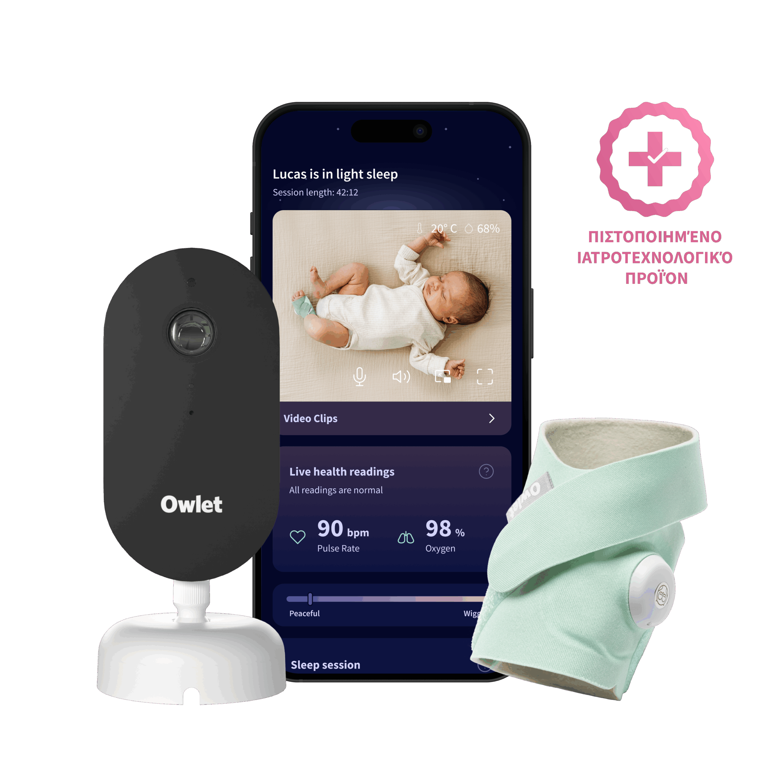 To Owlet Dream Duo (3ης γενιάς) είναι το πιο πλήρες σύστημα παρακολούθησης του μωρού στην αγορά – συνδυάζοντας την ιατρικά πιστοποιημένη κάλτσα Dream Sock την έξυπνη HD κάμερα Dream Sight και την εφαρμογή Owlet Dream σε μία ολοκληρωμένη λύση.